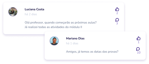 - Interaja com as postagens de outros alunos e professores, curtindo e comentando.