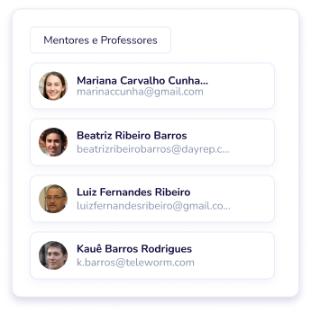 À direita do menu, você encontrará uma lista de professores e mentores que estão participando da conversa. Essa informação ajuda a identificar os especialistas presentes e facilita o contato com eles para tirar dúvidas ou buscar orientação.