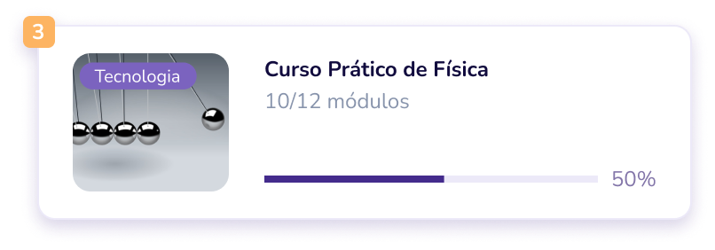 - Acompanhe os módulos em andamento, verificando o nome, data do último acesso e percentual de conclusão. Isso ajudará a manter o foco em seus estudos e garantir que você conclua dentro do prazo.