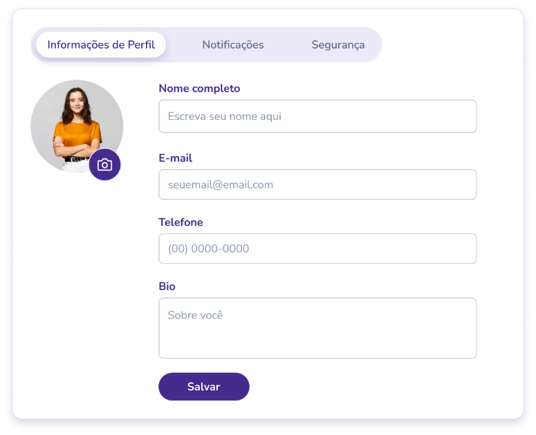 Aqui é o local da plataforma que você pode dar um toque pessoal ao seu perfil. Ao clicar na aba "Informações do Perfil", você pode editar informações importantes como foto, nome, e-mail, telefone e uma breve biografia.