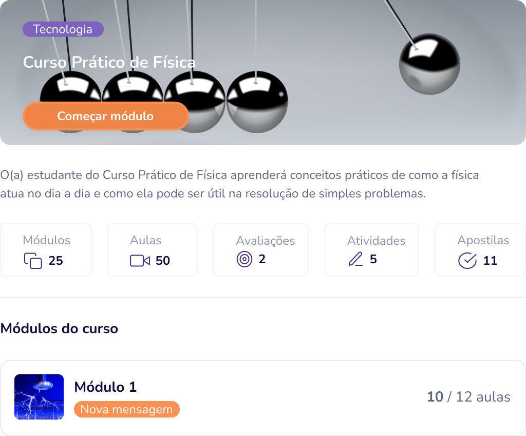 Ao selecionar o Curso, você será direcionado para os módulos e conteúdo do curso