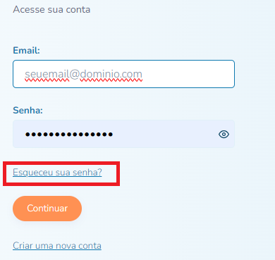 Na tela inicial de login, você deve clicar na opção ‘’Esqueceu sua senha?’’: